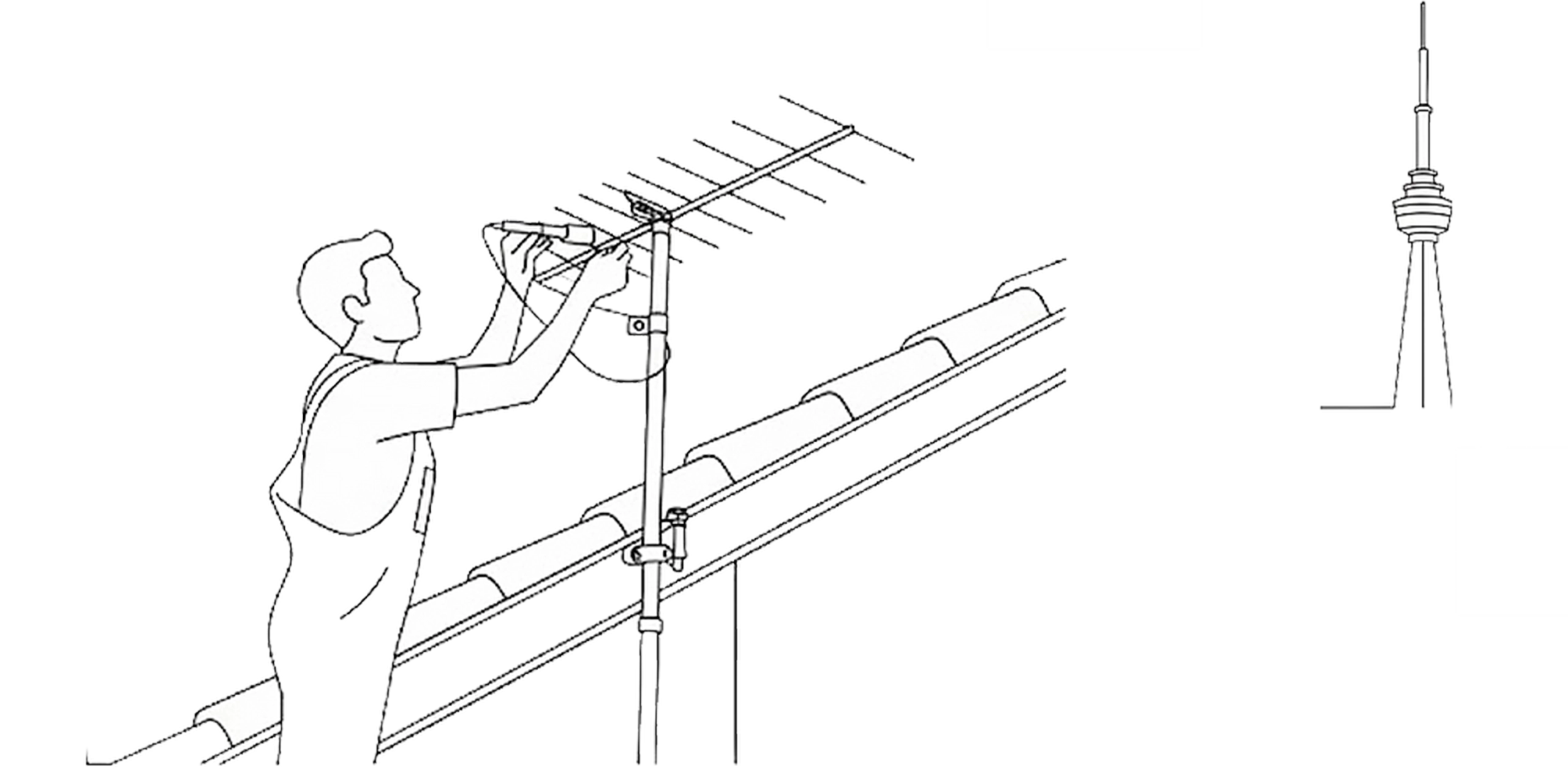 • Антенна установлена на крыше или высокой мачте
